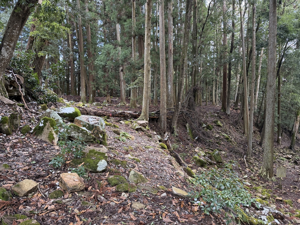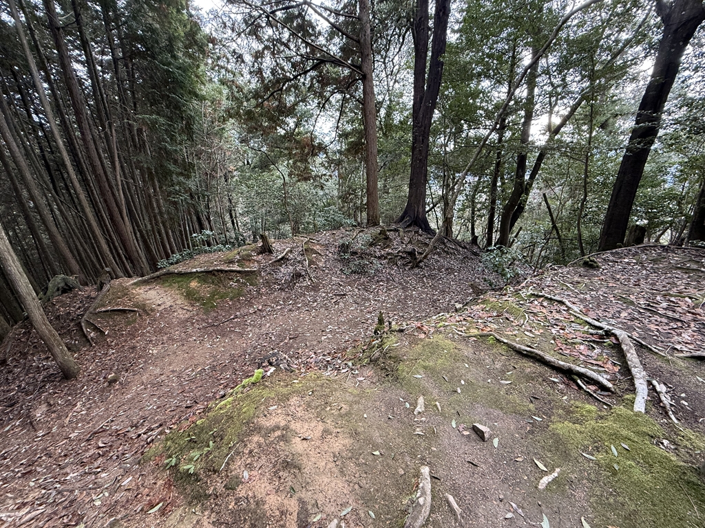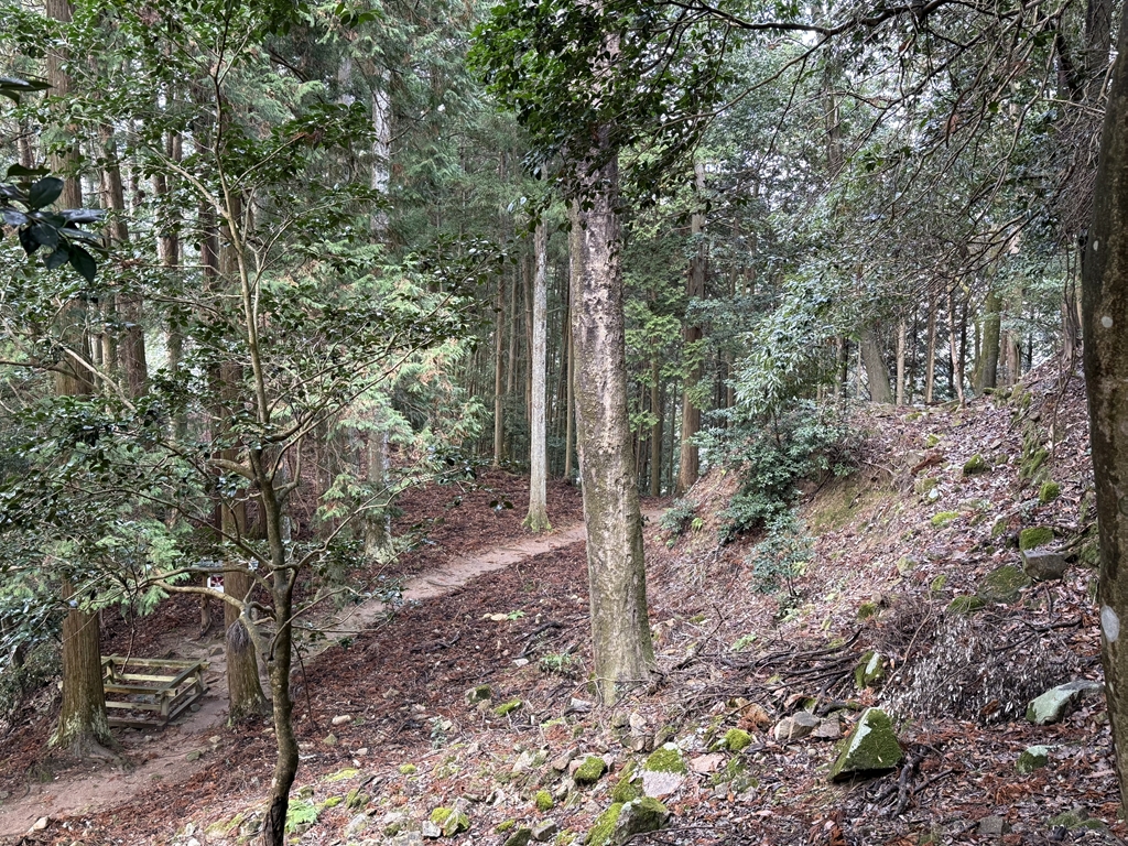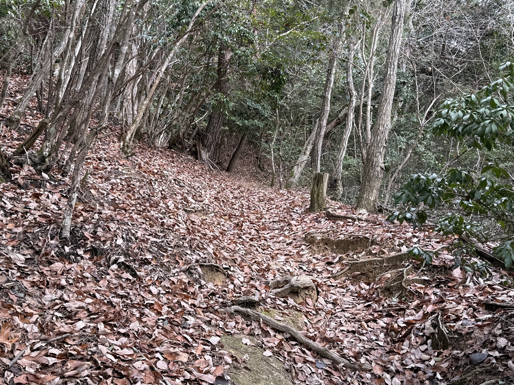 最後が旧本城へと続く登城道になります。最初は向かう予定だったのですが、落ち葉に埋もれた道をみて体力的に見ても